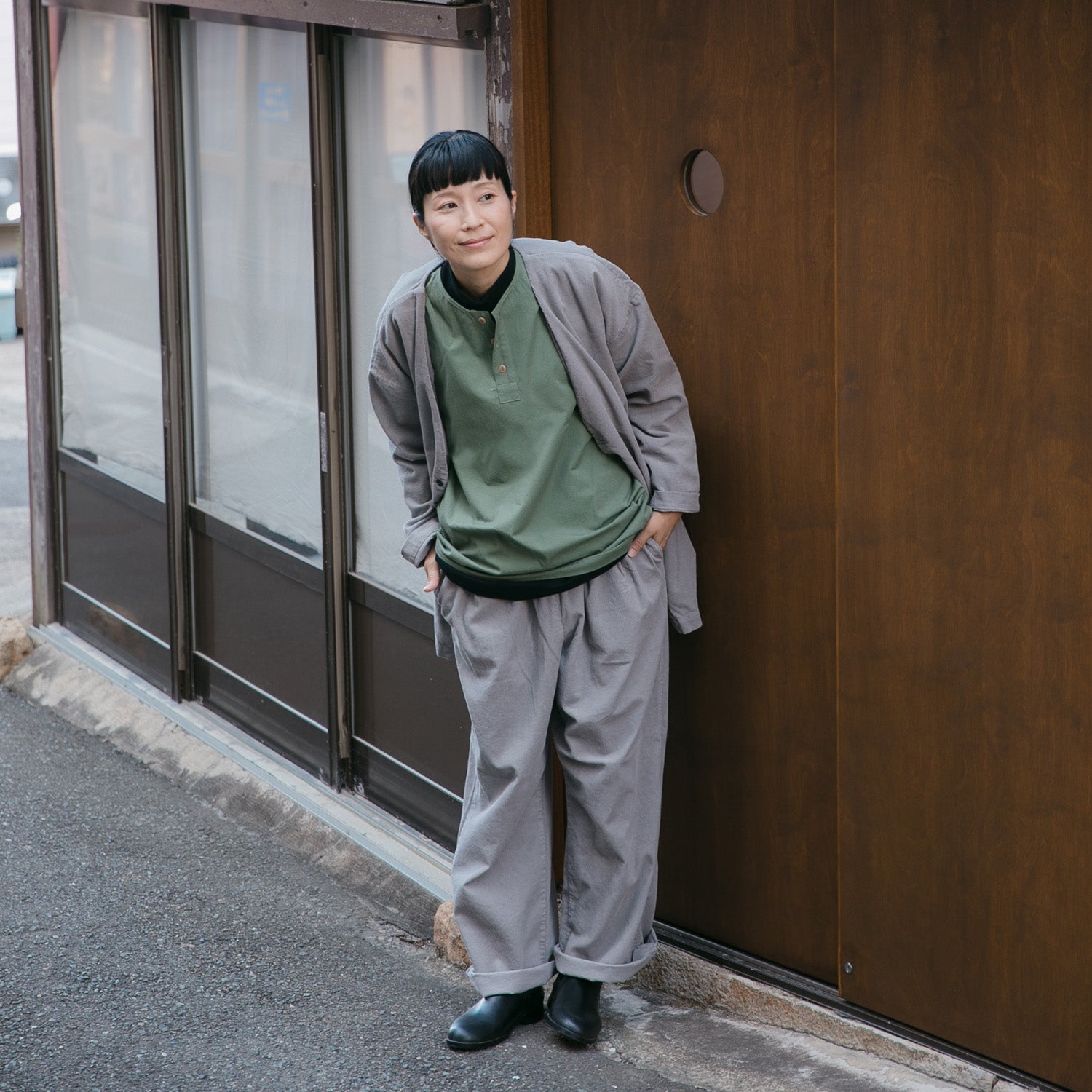 カラーは、グレー、ネイビー、ブラウン、チャコールの4色展開。絶妙な色合いと風合いを出すために、製品染めで仕上げています。